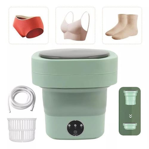 Cuidado íntimo em casa: mini máquina de lavar roupas íntimas no balde portátil lavadora 110v Design dobrável: a máquina de lavar portátil dobrável é pequena e conveniente para guardar embaixo, no banheiro ou em qualquer lugar, como dormitórios, apartamentos, trailers, camping, viagens e lavanderia. Material durável: a máquina de lavar dobrável é feita de material de alta resina, que pode ser por muito tempo. Vários modos: motor potente, 6,5 l de grande capacidade, 3 modos de limpeza: limpeza rápida, limpeza padrão, varredura; cesto de água para secagem roupas. Uso versátil: esta pequena máquina de lavar pode lavar itens pequenos, como roupas íntimas, roupas de bebê, Toalhas, etc. Nota: não leve roupas pesadas, como suéteres, lençóis, etc. O cesto de drenagem pode evitar a etapa de torcer as roupas, o que é conveniente e rápido. Tamanho:30cmx24cm Voltagem: 110/127v Pacote inclui: 1 Máquina de lavar dobrável 1 Cesto de drenagem 1 Tubo de drenagem 1 Plugue de carregamento Cores conforme disponiblidade em Marca: Não Informado