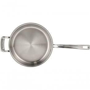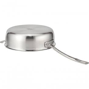 Seu cabo de aço inox fundido foi atualizado para permanecer frio ao toque e é fixado com rebites para maior segurança e resistência. As bordas cônicas permitem despejar líquidos sem respingos, e a tampa inclusa auxilia no preparo de receitas que exigem cozimento uniforme.