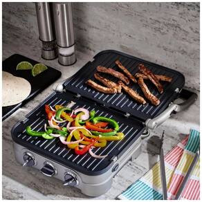 Com a conveniência de cocção 5 em 1, a Churrasqueira Indoor Griddler da Cuisinart pode lidar com tudo, desde panquecas e salsichas até queijos grelhados, bifes, hambúrgueres e paninis. Uma tampa flutuante e um conjunto de placas antiaderentes reversíveis transformam o Griddler em uma churrasqueira de contato, prensa de panini, churrasqueira completa, chapa completa ou metade churrasqueira metade chapa. Os controles de temperatura dupla permitem ajustar de 'aquecer' a 'selar' no modo chapa/prensa de panini, e de 93ºC a 218ºC no modo chapa, garantindo que tudo seja perfeitamente cozido todas as vezes nas placas antiaderentes para refeições práticas. A limpeza é fácil, graças às placas removíveis laváveis na lava-louças, bandeja de gotejamento removível e uma ferramenta de limpeza. A Churrasqueira Indoor Griddler PFAS-free da Cuisinart tem tudo o que você precisa para refeições deliciosas, fáceis e versáteis.