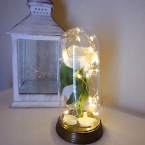 - Rosa Artificial aveludada de Plástico idêntico ao natural e dura mais de 100 anos dentro da cúpula, é eterna ;
