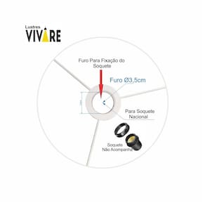 É exclusivamente para fixação do soquete bocal furo 3,5cm. O produto composto apenas a cúpula, não acompanha abajur. Resistente á maresia, garantia 1 ano após recebimento. Sua utilização para bases e pedestal de abajur, abajur de quarto, abajur de sala, abajur de cabeceira, abajur moderno, luminárias e pendentes.