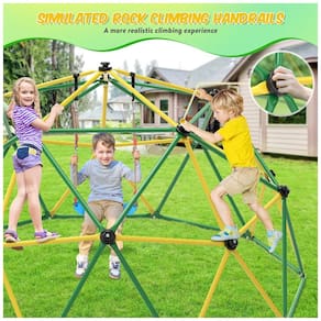 A Jungle Gym para Crianças é uma cúpula de escalada especialmente projetada para os pequenos aventureiros. Permita que as crianças explorem alturas e espaços ao subir, desenvolvendo força, coordenação motora e equilíbrio, inspirando um espírito de aventura e desejo de explorar. Incentive as crianças a brincarem juntas e desenvolverem suas habilidades de comunicação e colaboração. Experimente uma experiência de jogo versátil com nossa cúpula de escalada, que inclui balanço e rede. Pode ser anexada a um galho ou estrutura de escalada, e a rede destacável é também um tapete de brincar. Seu filho poderá desfrutar de uma experiência de jogo multifacetada voando e pulando. Crie um playground familiar para momentos de diversão. Leve as crianças para brincar ao ar livre e faça com que deixem de lado os dispositivos eletrônicos, liberando sua energia. Você também pode brincar junto com seus filhos, criando memórias maravilhosas. Resistente e Durável, Feito de aço galvanizado resistente à ferrugem e às intempéries, nossa cúpula de escalada externa garante durabilidade e resistência à ferrugem em todas as condições climáticas. A estrutura, composta por tubos galvanizados a quente e paredes de ferro de 25,5mm de espessura, garante estabilidade e segurança. Inclui 1 torre de escalada, 1 balanço, 1 rede, 2 luvas de instalação. Dimensões da montagem 320cm. Capacidade máxima de peso de 453kg. Fácil de mover e montar. Adequado para crianças de 3 a 10 anos. Marca recomendada pelo fabricante: Hapsor.