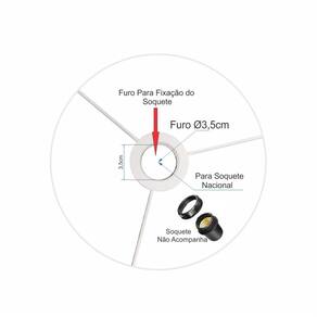 É exclusivamente para fixação do soquete bocal furo 3,5cm e furo para fixar diâmetro 3,5cm. O produto composto apenas a cúpula, não acompanha abajur. Resistente á maresia, garantia 1 ano após recebimento. Sua utilização em bases e pedestal de abajur, abajur de quarto, abajur de sala, abajur de cabeceira, abajur moderno.