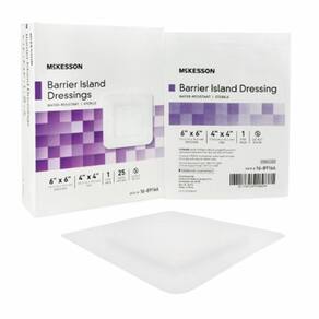 Curativo composto Barrier Island Resistente à Água McKesson 6 x 6 polegadas Polipropileno/Rayon 4 x 4 em 1 cada da McKesson (pacote com 6)
