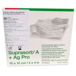 Curativo Suprasorb A+ Ag Pro 10x10cm com Prata Iônica - Lohmann-Rauscher Descrição do Produto O Curativo Suprasorb A+ Ag Pro é indicado para o tratamento de feridas infectadas ou com risco de infecção. Composto por fibras de alginato de cálcio e 1,5% de prata iônica, forma um gel ao entrar em contato com o exsudato da ferida, ajudando a reduzir a carga bacteriana inclusive MRSA e VRE e promovendo um ambiente úmido ideal para a cicatrização. Seu material macio e maleável se adapta ao leito da ferida e pode preencher cavidades com conforto e segurança. Indicação de Uso Úlceras por pressão, venosas, arteriais e diabéticas Feridas infectadas ou sob risco de infecção Feridas cirúrgicas, enxertos de pele e zonas doadoras Queimaduras de 2º grau Lesões micóticas Características Técnicas Medida: 10cm x 10cm Composição: Alginato de cálcio e prata iônica 1,5% Produto estéril e de uso único Marca: Lohmann-Rauscher Registro ANVISA: 80102511880 Contém: 10 unidades Diferenciais Pronto para uso Reduz a carga microbiana e aprisiona detritos Forma gel em contato com o exsudato Adaptável a feridas cavitárias Pode permanecer por até 7 dias na ferida conforme nível de exsudação Modo de Aplicação Higienize a ferida conforme protocolos clínicos. Seque a pele ao redor. Recorte o curativo, se necessário. Aplique diretamente sobre o leito da ferida. Cubra com curativo secundário e fixe com gaze, filme ou bandagem. Para feridas com pouca exsudação, umedeça com soro fisiológico antes da aplicação. Curativo secundário deve ser trocado diariamente para manter a higiene. Cuidados e Armazenamento Não reutilizar Descartar após o uso conforme normas hospitalares Armazenar em local seco, limpo e protegido do calor e umidade Marca: Não Informado