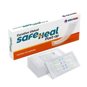 Curativo visível safe heal post-op 10x20 5x15 40un kelogel Tamanho: 10x20cm O curativo visível safe heal post-op kelogel é um curativo estéril com design inovador que permite monitorar feridas sem trocas desnecessárias. É translúcido, maleável, impermeável e possui uma almofada de espuma em formato de colmeia para visibilidade. Sua aplicação é facilitada por tiras destacáveis e um filme de poliuretano.
