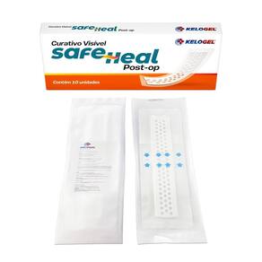 Curativo visível safe heal post-op 10x30 5x25 1un kelogel Tamanho: 10x30cm O curativo visível safe heal post-op kelogel é um curativo estéril com design inovador que permite monitorar feridas sem trocas desnecessárias. É translúcido, maleável, impermeável e possui uma almofada de espuma em formato de colmeia para visibilidade. Sua aplicação é facilitada por tiras destacáveis e um filme de poliuretano.