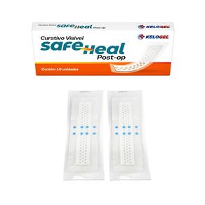 Curativo visível safe heal post-op 10x30 5x25 2un kelogel Tamanho: 10x30cm O curativo visível safe heal post-op kelogel é um curativo estéril com design inovador que permite monitorar feridas sem trocas desnecessárias. É translúcido, maleável, impermeável e possui uma almofada de espuma em formato de colmeia para visibilidade. Sua aplicação é facilitada por tiras destacáveis e um filme de poliuretano.