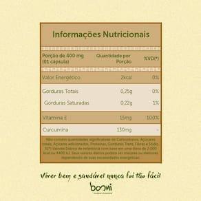 Curcuma biomax true source 60 cápsulas A curcuma biomax true source é a escolha perfeita para quem busca natural, ação antioxidante e funcionalidade superior em suplementação sem aditivos desnecessários, com fórmula pura. A curcuma biomax true source possui tecnologia lipossomal, utiliza tcm triglicerídeos de cadeia média para encapsular e proteger a curcumina, garantindo absorção superior e entrega direta aos tecidos do corpo. Sua ação antioxidante é reforçada por vitamina c, ajudando a combater radicais livres e fortalecer o sistema imune. Ingredientes: triglicerídeos de cadeia média tcm , extrato de rizomas de cúrcuma longa e dl-alfa-tocoferol vitamina e . Composição da cápsula: gelatina, água purificada, umectante glicerina e corante curcumina. Não contém glúten. Marca: Não Informado Ean: 040141161581