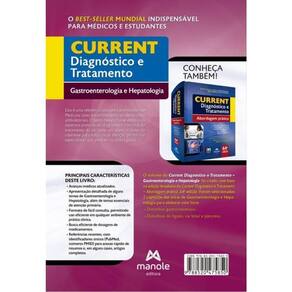 O volume do Current Diagnóstico e Tratamento – Gastroenterologia e Hepatologia foi criado com base na edição brasileira do Current Diagnóstico e Tratamento – Abordagem prática, 64ª edição. Foram selecionados 2 capítulos da área de Gastroenterologia e Hepatologia para elaborar este livro: • Distúrbios gastrointestinais. • Distúrbios do fígado, via biliar e pâncreas. Principais características deste livro: • Avanços médicos atualizados. • Apresentação detalhada de alguns temas de Gastroenterologia e Hepatologia, além de temas essenciais da atenção primária. • Formato de fácil consulta, permitindo uso eficiente em qualquer ambiente de prática clínica. • Acesso rápido a dosagens de medicamentos. • Referências recentes, com identificadores únicos (PubMed, números PMID) para acesso rápido de resumos e, em alguns casos, artigos completos.