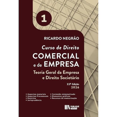 Este Curso é uma obra completa, totalmente atualizada e sistematizada em três volumes (Vol. 1: Teoria Geral da Empresa e Direito Societário - Vol. 2: Títulos de Crédito e Contratos Empresariais - Vol. 3. Recuperação de Empresas, Falência e Procedimentos Concursais Administrativos), abrange toda a matéria de Direito Empresarial, com comentários à legislação, à jurisprudência e enunciados, bem como a aspectos polêmicos sobre a interpretação da lei, por doutrinadores e tribunais em casos concretos. Devido ao modo como é exposta a doutrina do Professor Ricardo Negrão, a obra se destina tanto a leitores da graduação quanto da pós-graduação e, especialmente, aos profissionais que desejem aprofundar seus conhecimentos. Essa amplitude se deve à didática adotada pelo Autor e à estrutura de seu texto, elaborado de modo sistematizado, com diversos recursos de memorização - quadros sinóticos, figuras, tabelas, esquemas, fluxogramas, exemplos e casos práticos além da diagramação elaborada para facilitar a visualização e a leitura. Tais características, aliadas à profundidade do conteúdo, sobretudo na abordagem de temas complexos, levam o leitor a alcançar uma visão ampla da legislação, da jurisprudência e da doutrina, sobre os aspectos materiais e processuais do direito comercial e de empresa. Escrito em linguagem clara e direta, sem renunciar à profundidade necessária ao estudo do direito empresarial, o Vol. 1 - Teoria Geral da Empresa e Direito Societário abrange, entre inúmeros temas: abordagem histórica e fontes do direito comercial e de empresa; conceitos de comerciante, atos de comércio, empresa e empresário; estabelecimento empresarial e ponto comercial; propriedade industrial, com exame minucioso das normas sobre patentes, registro de desenho industrial e de marca e indicações geográficas; o tema do nome empresarial e dos livros empresariais antecede o estudo pormenorizado do direito societário, com destaque para os aspectos gerais das sociedades, suas espécies, a resp