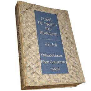 Curso de Direito do Trabalho, Gomes e Gottschalk,1ª ed. 1991 Estado de conservação: Livro em bom estado. Páginas escurecidas pelo tempo. Carimbo com nome do dono na primeira, última folhas e contracapas.
