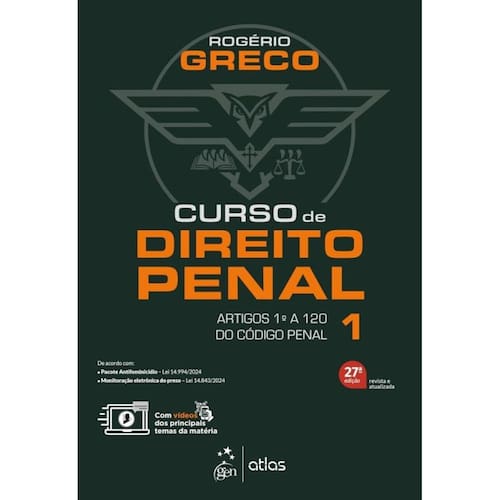 Fruto de um intenso trabalho de pesquisa teórica, conjugado com a experiência prática do autor, o Curso de Direito Penal, volume 1, tem a finalidade de trazer ao leitor, de forma didática, clara e aprofundada, discussões sobre todos os artigos que envolvem a Parte Geral do Código Penal. O autor, que durante aproximadamente 30 anos atuou no Ministério Público de Minas Gerais, praticamente sempre lidando com a área penal, conseguiu reunir neste volume as discussões doutrinárias mais importantes e atuais, sem descuidar das mais modernas posições de nossos Tribunais, principalmente os Superiores. O livro encontra-se atualizado com todas as modificações legislativas ocorridas no ano de 2024, permitindo um estudo seguro e completo de toda a Parte Geral do Código Penal. A obra, frequentemente citada pelos nossos Tribunais Superiores e indicada por várias bancas de concursos públicos, serve de norte não somente para aqueles que se encontram concluindo o curso de Direito, mas também para aqueles que almejam prestar concursos na área jurídica, bem como os profissionais que militam na área das Ciências Penais. Com certeza, trata-se de um dos mais completos estudos já realizados sobre a Parte Geral do Código Penal, consagrado, agora, em sua 27ª edição. ?