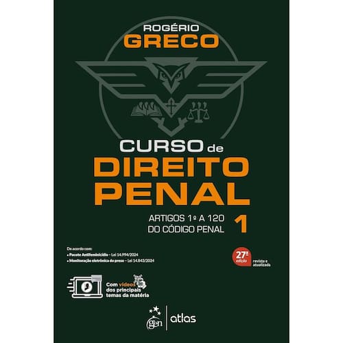 Fruto de um intenso trabalho de pesquisa teórica, conjugado com a experiência prática do autor, o Curso de Direito Penal, volume 1, tem a finalidade de trazer ao leitor, de forma didática, clara e aprofundada, discussões sobre todos os artigos que envolvem a Parte Geral do Código Penal. O autor, que durante aproximadamente 30 anos atuou no Ministério Público de Minas Gerais, praticamente sempre lidando com a área penal, conseguiu reunir neste volume as discussões doutrinárias mais importantes e atuais, sem descuidar das mais modernas posições de nossos Tribunais, principalmente os Superiores. O livro encontra-se atualizado com todas as modificações legislativas ocorridas no ano de 2024, permitindo um estudo seguro e completo de toda a Parte Geral do Código Penal. A obra, frequentemente citada pelos nossos Tribunais Superiores e indicada por várias bancas de concursos públicos, serve de norte não somente para aqueles que se encontram concluindo o curso de Direito, mas também para aqueles que almejam prestar concursos na área jurídica, bem como os profissionais que militam na área das Ciências Penais. Com certeza, trata-se de um dos mais completos estudos já realizados sobre a Parte Geral do Código Penal, consagrado, agora, em sua 27 edição. ? Marca: GEN ATLAS