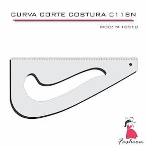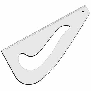 A curva de corte e costura 3 em 1, é uma ferramenta para desenho técnico utilizada para facilitar o traçado de curvas em modelagens de vestuário. Muito utilizada em diversos cursos de coste e costura por ser prática, você possue três réguas em uma: Curva de Alfaiate Cava Alta, Cava de Gancho e Régua reta de 60 cm. É formada por uma curva alta em um dos lados e uma reta paralela no outro além de uma referência de gancho em sua parte interna. São três réguas em uma