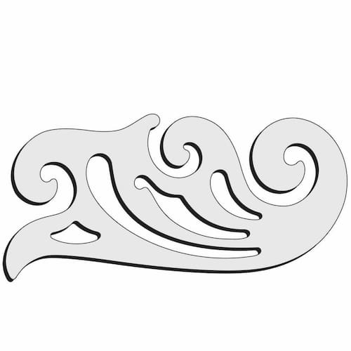 A curva francesa, um gabarito de acrílico composto por diversas curvas, nos mais variados raios e tamanhos. A régua permite desenhar e ligar pontos formando curvas, de maneira que elas fiquem perfeitamente encaixadas, sem usar cálculos de matemática.