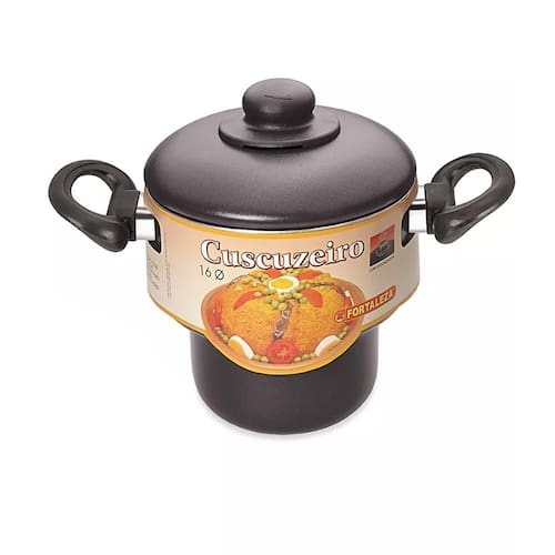 Cuscuzeira Antiaderente Alumínio Black N°16 Preta A Cuscuzeira Fortaleza antiaderente 5 camadas oferece tudo que você precisa no preparo de pratos saborosos para sua família e amigos com muito conforto, beleza e durabilidade. Diâmetro da boca: 16cm. Com alças laterais e na tampa. Comprimento: 27,5 cm Largura: 21,5 cm Altura: 20 cm Capacidade: 2L Material: Alumínio e Plastico Ean: 7896554406176