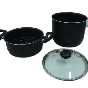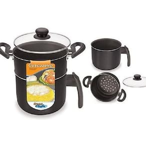 Cuscuzeira Preta com Alças e Tampa de Vidro N14 , revestida com antiaderente, possibilitando o uso com menos gordura no preparo de alimentos e também facilitando a limpeza. Seu formato facilita a retirada dos alimentos, pois sua borda faz com que o mesmo escorregue para o prato ou tigela. Com cabo de baquelite resistente ao calor. Produto nacional. Registro INMETRO: 000783/2018