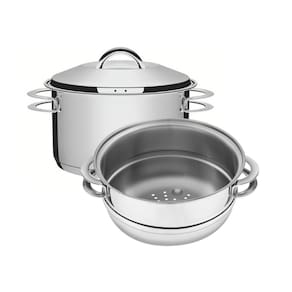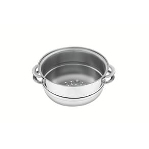 Panela para Cozimento a Vapor e Cuscuzeira Tramontina 20cm Inox Solar? Totalmente feita em aço inox, não soltam resíduos nos alimentos e são altamente duráveis, além possuir tampa com saída de vapor e encaixe perfeito. Pode ser utilizada em vários tipos de fogões e lavada diariamente na máquina de lavar, sua caçarola pode ser utilizada para outros cozimentos também. A Cuscuzeira Tramontina em Aço Inox vai contribuir para o sabor das suas receitas! Acompanha: Caçarola Funda (62504201) em Aço Inox 20cm e Cozi Vapore 20 cm (62510201) A Caçarola Funda em Aço Inox com Fundo Triplo com Tampa e Alças 20 cm de diâmetro 3,6 L é perfeita para todo o tipo de cozimento. Ela irá tornar a sua cozinha ainda mais completa. A Caçarola Funda da Tramontina é projetada pela linha Solar e oferece praticidade com um design que irá brilhar na mesa na hora de servir, mas não irá brilhar mais que a sua receita. Produzida em aço inox com fundo triplo (aço inox + alumínio + aço inox), ela oferece um cozimento uniforme dos alimentos, além de mantê-los aquecidos por mais tempo. Por sua parte interna ser em aço inox, ela não solta nenhum tipo de resíduo, fazendo com que o sabor seja natural e os alimentos mantenham-se saudáveis. Basta escolher a receita e se aventurar na cozinha. Cozi-Vapore Inox 20cm Solar Tramontina 62510200 1. Cozi-vapore totalmente feito em aço inox, não solta nenhum resíduo nos alimentos, mantendo-os saudáveis. Seu desenho limpo e sem cantos torna a limpeza muito mais fácil. 2. O cozi-vapore possui design diferenciado e moderno, com acabamento em alto brilho. 3. O cozi-vapore pode ser utilizado nos seguintes fogões: indução, gás, elétrico e vitrocerâmico. 4. O cozi-vapore conjuga design com tecnologia de ponta de fabricação, além de praticidade, estilo, bom gosto e beleza. 5. O cozi-vapore pode ser lavado diariamente na máquina de lavar louças.