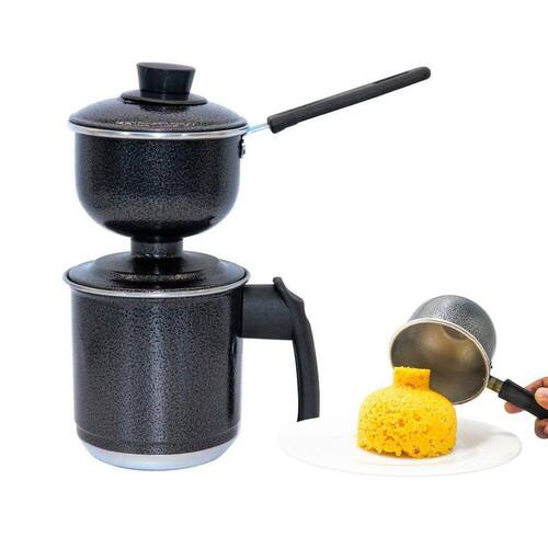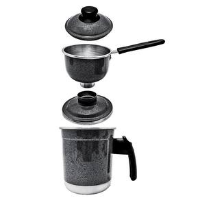 Cuscuzeiro individual tipo nordestino, cada jogo é composto por duas panelas de alumínio com duas tampas, uma para ferver água e uma para fazer o cuscuz ambas com cabos de Baquelite. Ideal para preparar porções individuais de cuscuz. - Acabamento pintado - Fácil de limpar - Total 3 peças: caneco, cuscuzeira e tampa Medidas aproximadas Diâmetro da panelinha 12 cm Altura da panelinha 7 cm Capacidade 500 ml Diâmetro 12 cm Altura total 25 cm Marca: Jf Aluminio