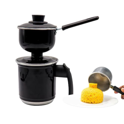- Acabamento pintado - Fácil de limpar - Total 3 peças: caneco, cuscuzeira e tampa