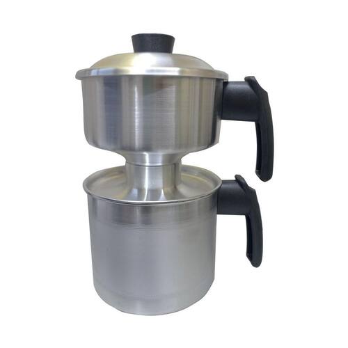 Composto por um caneco em alumínio reforçado para ferver água e duas peças de alumínio para fazer o cuscuz com respectivo cabos de baquelite A Cuscuzeira Individual, conta com o seu material em aluminio facilitando o preparo e seu cabo em Baquelite, que dessa forma facilita tambem o seu manuseio