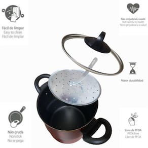 * Evite a imersão da panela quente em água fria. Deixe esfriar antes de lavar * Lave interna e externamente usando apenas uma esponja macia, sabão neutro ou detergente líquido. Enxugue bem com um pano seco. * Evite esquentar demais a panela vazia. Use em fogo baixo ou médio para reter o valor nutritivo dos alimentos e conservar o antiaderente. * Evite aquecer a temperaturas superiores a 350°C.