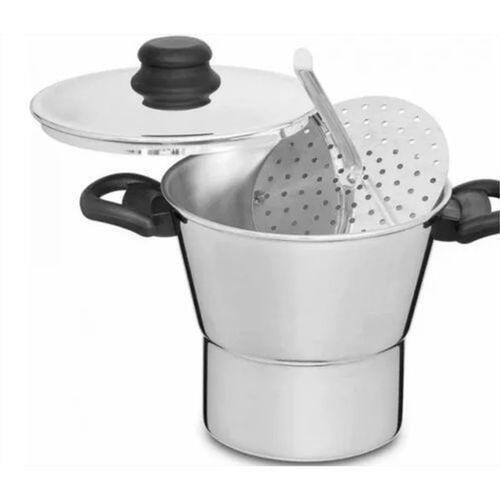 A cuscuzeira de alumínio da linha prolar é uma das queridinhas dessa linha, é uma peça altamente sofisticada, prática e bonita, altamente durável, bonita, compacta, e que faz poções na sua medida, mas a massa do cuscuz é cozida.