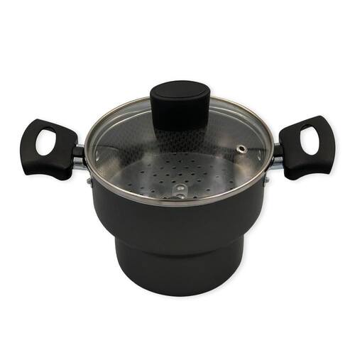 Contém:01 cuscuzeiro com tampa de vidro 14 cm cinza antiaderente Marca: Não Informado