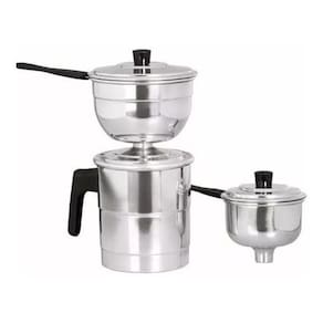Composto por um caneco de alumínio reforçado para ferver água e duas peças de alumínio para fazer o cuscuz com respectivo cabos de baquelite. Consulte condições de compras no atacado. Um produto de qualidade Continental, há mais de 40 anos de tradição e qualidade.