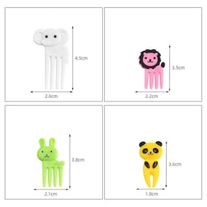 Cute mini bento Zoo Mini Forks Set Childrens animal fruit fork Característica: Com esses garfos de plástico, você pode facilmente e convenientemente comer frutas, outros alimentos e aproveitar seu tempo livre. Agora, seus entes queridos também não passarão fome Feito de plástico de qualidade alimentar, que é seguro de usar. Fornecido em conjuntos de 6/10/16, o que é muito prático e econômico. Multifuncional, pois decora seus pratos, bem como os talheres que são convenientes para comer. Os mini garfos com animais de desenho animado são muito pequenos, seguros e fáceis de transportar. Especificações: Cor: animais multicoloridos aleatórios Material: plástico de qualidade alimentar Tamanho: 30-60mm Pacote incluído 10pcsMini garfos