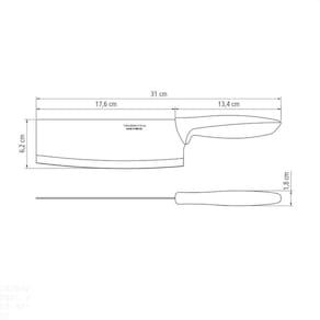 Para deixar sua cozinha ainda mais charmosa e de qualidade, o Cutelo Oriental Tramontina Plenus com Lâmina em Aço Inox e Cabo de Polipropileno Preto 7 Polegadas da Linha Plenus é a escolha perfeita. Moderna e fácil de usar permite picar os alimentos delicadamente com precisão. Produzido com cabo de polipropileno na cor preta, possui lâmina de 7 polegadas em aço inox. Confortável de usar e prático para as exigências diárias, é um produto que pode ser levado à máquina de lavar louças. Orientações A lâmina de aço inox têm maior durabilidade do fio devido ao tratamento térmico. O cabo de polipropileno possuem maior resistência e durabilidade. Pode ir à máquina de lavar louças facilitando seu dia a dia. Características Gerais EAN13 7891112236967 DUN14 17891112236964 NCM 8214.90.90 Peso Líquido 0,1363 kg. Peso Bruto 0,1613 kg. Metragem 0,000776 m³. Dimensões Embalagem (Compr. X Larg. X Alt.) 21x 97x 381 mm. Dimensões Produto (Compr. X Larg. X Alt.) 310x 65x 18 mm. Cor 1 000000 Hexa Observações Antes da primeira utilização, lave bem a peça e seque-a. Produto cortante e perfurante: tenha cuidado ao manusear e mantenha fora do alcance das crianças. Para maior durabilidade do produto recomenda-se secar bem antes de guardar, mesmo após lavagem em máquina. Para descarte do produto e embalagem siga as orientações de reciclagem vigentes.