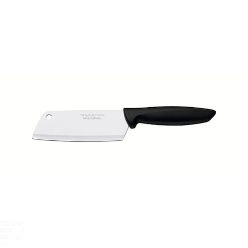 Para deixar as receitas mais deliciosas, o Cutelo Tramontina Plenus com Lâmina em Aço Inox e Cabo de Polipropileno Preto 5 Polegadas da Linha Plenus é a escolha certa. Confortável de usar e prático, ele vai dar um toque a mais nas suas receitas. Ideal para quebrar e separar ossos. Produzido com cabo em polipropileno e lâmina de aço inox de 5 polegadas. Orientações Ideal para quebrar e separar os ossos.A lâmina de aço inox têm maior durabilidade do fio devido ao tratamento térmico. O cabo de polipropileno possui maior resistência e durabilidade. Pode ir à máquina de lavar louças facilitando seu dia a dia. Características Gerais EAN13 7891112225497 DUN14 17891112225494 NCM 8214.90.90 Peso Líquido 0,1300 kg. Peso Bruto 0,1550 kg. Metragem 0,000587 m³. Dimensões Embalagem (Compr. X Larg. X Alt.) 20x 77x 381 mm. Dimensões Produto (Compr. X Larg. X Alt.) 268x 61x 18 mm. Cor 1 000000 Hexa Observações Antes da primeira utilização, lave bem a peça e seque-a. Produto cortante e perfurante: tenha cuidado ao manusear e mantenha fora do alcance das crianças. Para maior durabilidade do produto recomenda-se secar bem antes de guardar, mesmo após lavagem em máquina. Recomenda-se o uso de tábuas de polipropileno ou madeira da Tramontina para maior durabilidade do fio da faca. Não é indicado o uso da faca para o corte de alimentos congelados. Mantenha sempre sua faca afiada utilizando os afiadores da Tramontina.Para descarte dos produtos e embalagens siga as orientações de reciclagem vigentes.