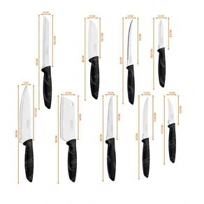 Muito importante:-- conferir produtos no ato do recebimento. Não aceitar produtos com embalagem violada amassado, rasgado, aberto, quebrado, etc , a recusa deve ser feita no ato.Componentes do kit:- 1 processador de alimentos cutter profissional inox 8l cr-8l 220v skymsen- 1 jogo de facas 9 peças tramontinaprocessador de alimentos cutter profissional inox 8l cr-8l 220v skymsen- o processador de alimentos cutter skymsen é um dos parceiros mais versáteis que você pode ter na sua cozinha comercial. Robusto e eficiente, conta com lâmina multiuso ideal para picar rapidamente os ingredientes, preparar molhos, cremes e muito mais- com esse processador de alimentos profissional, você consegue cortar e moer carnes, picar e triturar alimentos, preparar recheios, patês, mousses, molhos e temperos, maioneses caseiras, massas de torta, farinhas de pão e de grãos, pasta de amendoim, triturar polpas de frutas congeladas e até desfiar carne seca e frangos, utilizando a lâmina desfiadora opcional.- suas lâminas duplas de aço inox em formato de vírgula e seu potente motor desenvolvido para possuem a força necessária para cortar os alimentos mais pesados em poucos segundos.- feito com materiais de extrema qualidade, o processador de alimentos skymsen possui corpo em aço inox e copo de aço inox 304 com cantos arredondados. Além disso, sua lâmina removível facilita muito a limpeza e a conservação do equipamento.- com a sua exclusiva tampa transparente com dosador, você consegue visualizar o ponto exato durante preparo e incluir alimentos facilmente. Inclui também sensor de segurança que desliga automaticamente a máquina ao remover a tampa.- muitas vezes chamado de processador de alimentos industrial, o cutter está disponível no modelo de 8 litros e atende várias demandas em cozinhas, restaurantes, catering, hamburguerias, charcutarias, padarias, sorveterias, confeitarias e outros profissionais do food service.Características técnicas:- modelo: cr-8l- tensão elétrica / frequência / fases: 220 v / 60 hz / 1- potência nominal: 1000 w- potência do motor: 1 cv- consumo: 1 kw/h- volume do bojo: 8 l- dimensões axlxp : 53 cm a x 31 cm l x 31 cm p- dimensões da embalagem axlxp : 60 cm a x 39 cm l x 36 cm p- peso líquido: 17,30 kg- peso bruto: 19,50 kgjogo facas em aço inox cabo preto cozinha gourmet plenus 9 peças 23498048 tramontinacaracterística e descrição ficha técnica:conteúdo:- 1 faca lâmina 7,6cm para tornear- 1 faca lâmina 7,6cm para legumes- 1 faca lâmina 12,7cm para churrasco e frutas- 1 faca lâmina 12,7cm para tomates- 1 faca lâmina 12,7cm para desossa- 1 faca lâmina 12,7cm santoku- 1 faca lâmina 17,8cm pão- 1 faca lâmina 17,8cm chef- 1 faca lâmina 12,7cm cutelo- lâmina em aço inox, maior resistência á desgaste por fricção, raspagem- fácil manuseio e limpeza sempre cuidando com navalha e pontas - 9 facas por embalagem.