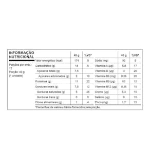 Contém lactose.Alérgicos: contém derivados de leite e soja. Pode conter amendoim, avelã e pistache. Não contém glúten. Sugestão de uso: consumir uma unidade ao dia. Marca: Não Informado