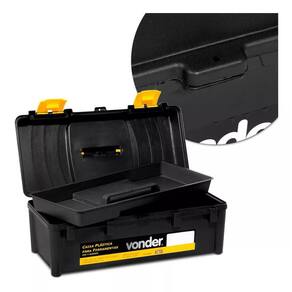 1 Caixa plástica Indicada para organizar, armazenar e transportar ferramentas, peças e acessórios em geral Possui alça e fecho em polipropileno virgem, com uma bandeja removível