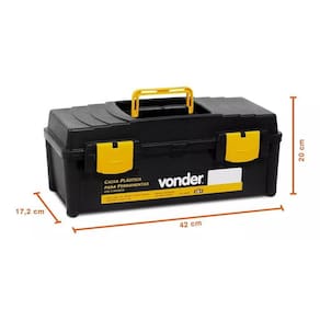 1 Caixa plástica Indicada para organizar, armazenar e transportar ferramentas, peças e acessórios em geral Possui alça e fecho em polipropileno virgem, com uma bandeja removível