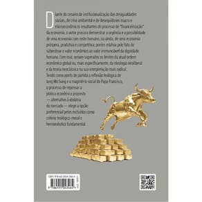 Diante do cenário de institucionalização das desigualdades sociais, de crise ambiental e de desequilíbrios macro e microeconômicos resultantes do processo de “financeirização” da economia, o autor procura demonstrar a urgência e a possibilidade de uma economia com rosto humano, ou ainda, de uma economia próspera, produtiva e competitiva, porém relativa pelo fato de subordinar o valor econômico ao valor irrenunciável da dignidade humana. Com isso, seriam superados os limites da atual ordem econômica global ou, mais especificamente, da ideologia neoliberal e da teoria neoclássica na sua interpretação mais radical. Tendo como ponto de partida a reflexão teológica de Jung Mo Sung e o magistério social do Papa Francisco, o processo de repensar a prática econômica proposto — alternativo à idolatria do mercado — elege a opção preferencial pelos excluídos como critério teológico-moral e hermenêutico fundamental.