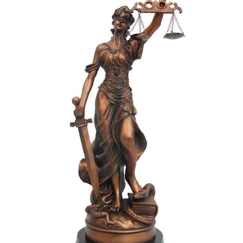A Dama da Justiça é uma divindade grega por meio da qual a justiça é definida, no sentido moral, como o sentimento da verdade, da equidade e da humanidade, colocado acima das paixões humanas. Por este motivo, sendo personificada pela deusa Têmis, é representada de olhos vendados e com uma balança na mão.A Peça é feita de resina na cor bronze ideal para decorar sua casa ou escritório ou presentear um amigo ou familiar que luta pela lei.