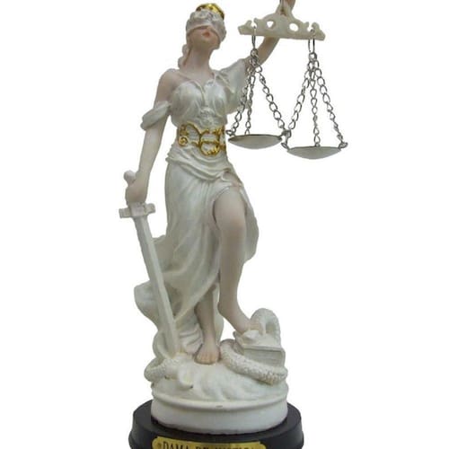 A Dama da Justiça é uma divindade grega por meio da qual a justiça é definida, no sentido moral, como o sentimento da verdade, da equidade e da humanidade, colocado acima das paixões humanas. Por este motivo, sendo personificada pela deusa Têmis, é representada de olhos vendados e com uma balança na mão.A Peça é feita de resina na cor creme ideal para decorar sua casa ou escritório ou presentear um amigo ou familiar que luta pela lei. Ficha técnica Comprimento: 9 cm Largura: 9 cm Altura: 28 cm Cor: Creme Material: Resina com base de madeira