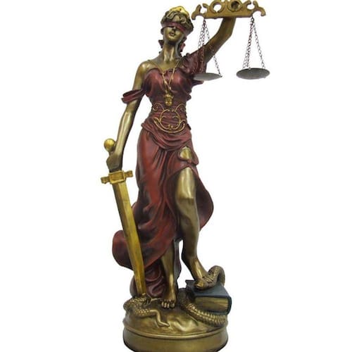 A Dama da Justiça é uma divindade grega por meio da qual a justiça é definida, no sentido moral, como o sentimento da verdade, da equidade e da humanidade, colocado acima das paixões humanas. Por este motivo, sendo personificada pela deusa Têmis, é representada de olhos vendados e com uma balança na mão.A Peça é feita de resina na cor vermelha e cobre ideal para decorar sua casa ou escritório ou presentear um amigo ou familiar que luta pela lei.