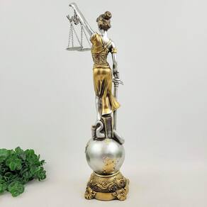 Dama Da Justiça Dourada Prata 21x26x19cm Estátua Decorativa Vem decorar, seja INIGUAL