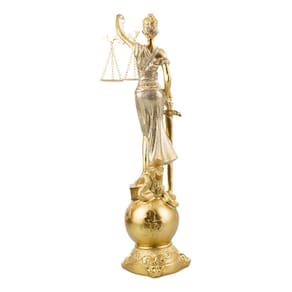 Este é um enfeite decorativo autêntico, representando a Dama da Justiça na cor dourada, posicionada sobre um globo. A peça, produzida pelo fabricante Taimes, tem uma altura total de 41 cm. O material utilizado na sua fabricação é a resina, que confere à peça uma resistência e durabilidade excepcionais. As dimensões da peça são de 11x11x41 cm, tornando-a uma peça de tamanho considerável que certamente chamará a atenção em qualquer ambiente. O peso da peça é de 620 gramas, o que a torna fácil de manusear e posicionar. O modelo é a Dama Da Justiça No Globo Resina Têmis Deusa Direito 41 Cm, uma representação artística da deusa da justiça, Têmis. A temática da escultura é a Dama da Justiça, um símbolo universal de justiça e equidade. Esta é uma peça decorativa, perfeita para decorar escritórios de advogados, salas de tribunal ou mesmo a sua casa. A peça vem com uma base, o que facilita a sua colocação em qualquer superfície plana.