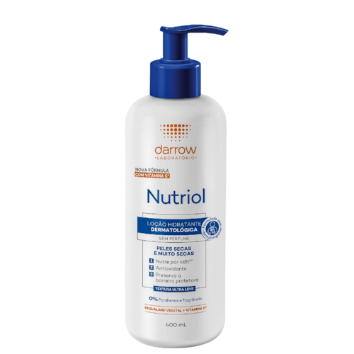 Loção hidratante corporal para peles secas e ressecadas. Darrow Nutriol Peles Secas promove toque macio e sedoso com sensação refrescante.