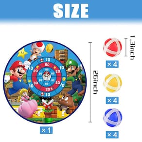 - Pacote econômico: o pacote inclui 1 tabuleiro de dardos com padrão Super Bros, 12 bolas adesivas e os ganchos anexados podem ser presos em superfícies lisas, tornando o jogo divertido e desafiador, independentemente de ambientes internos ou externos