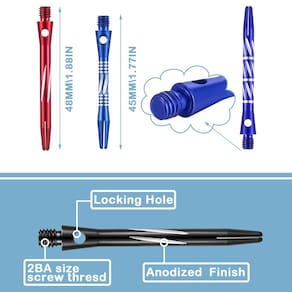 - Design de furo de bloqueio no eixo: estes eixos de dardos de liga de alumínio apresentam um orifício de bloqueio, que pode permitir que você use alavancagem para fixar o eixo ao tambor de dardo com firmeza, não se preocupe que o eixo possa cair durante o uso