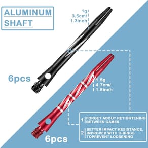 Estes eixos de dardos com anel de vedação de borracha são feitos de material de liga de alumínio de qualidade, firme, resistente à cor e durável, que não são fáceis de enferrujar ou quebrar quando em uso. Os anéis de borracha não são apenas macios e flexíveis, mas também têm um longo tempo de serviço.