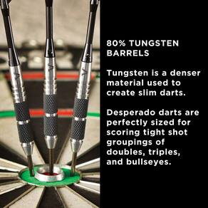 - Os barris de 80% tungstênio têm um perfil fino, permitindo um agrupamento mais apertado de tiros que aumentam a pontuação