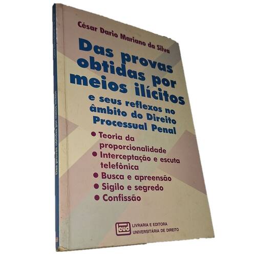 Das Provas Obtidas por Meios Ilícitos, Cesar Dario Mariano, 1999 Estado de conservação: Livro em bom estado. Carimbo com nome do antigo dono na primeira e última folha e contracapas.