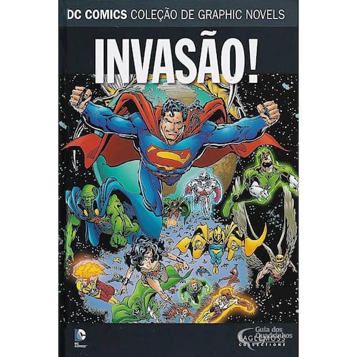 Dc Graphic Novels Sagas Definitivas N 23 - Invasão Dc Graphic Novels Sagas Definitivas N 23 - Invasão Publicado em: abril de 2020Editora: EaglemossLicenciador: DC ComicsCategoria: Álbum de LuxoGênero: Super-heróisStatus: Título encerradoNúmero de páginas: 384Formato: Americano 17 x 26 cm Colorido/capa dura A formação da aliança invasora alienígena, a tentativa de reação de novos e velhos heróis espaciais e o início da invasão à Terra. Autores: J.M. Dematteis, George Pérez, Roger Stern, Paul Kupperberg, Alan Grant, John Wagner - John HowardDesenhos: Bart Sears, Kevin Maguire, Chris Marrinan, Kerry Gammill, Graham Nolan, Irv Novick
